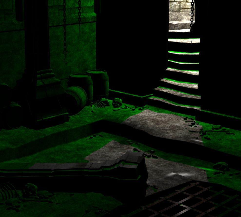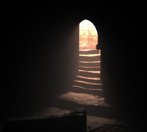 (N.B. The green colour in the renders is the Shadow Colour of the point light on the staircase, which would usually be set to black, but I wanted to be able to see how the volume and light/shadow were interacting.)