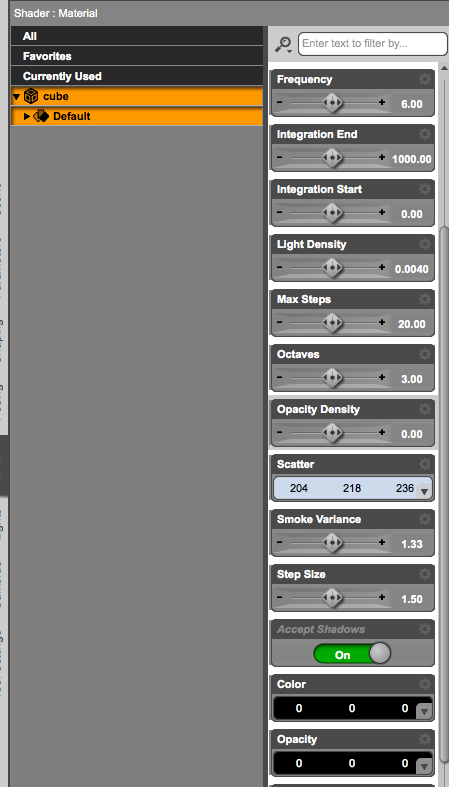 . I'll try to clean up the shader a bit and do some more testing before posting my settings. Meanwhile, try using very low numbers for the opacity and light density, such as 0.001-0.01.
