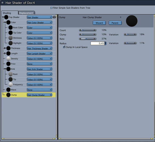 I'll attach some images of the hair room settings and curl tool settings and also the hair shader settings. I may have to do this in a couple different posts.