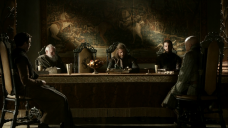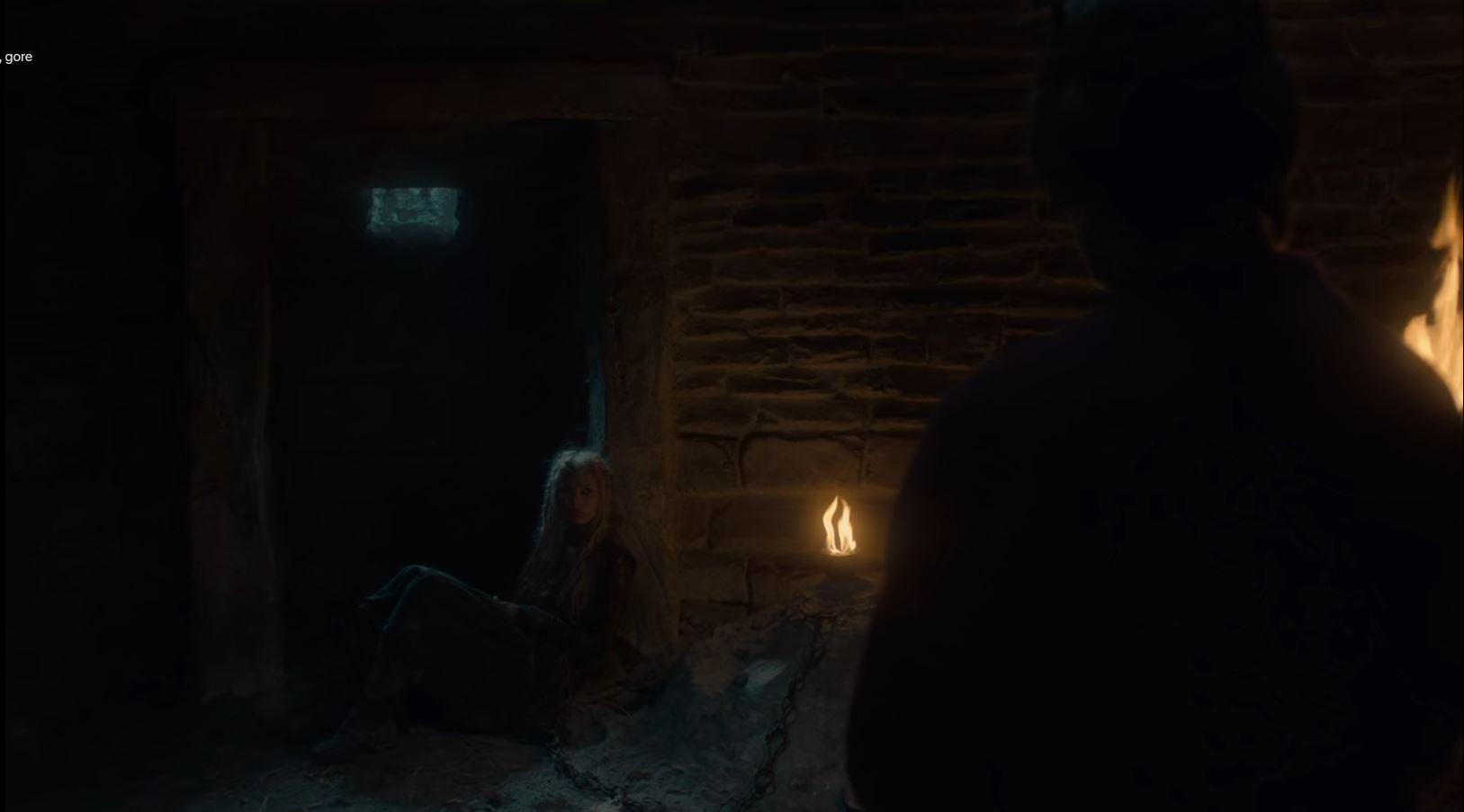This is one example of using a table as a leading line to draw your eyes towards the character. Notice here as well that the mood is quite somber and sad. (This is a screenshot of "The Last Kingdom" which I highly recommend. It has superb lighting).