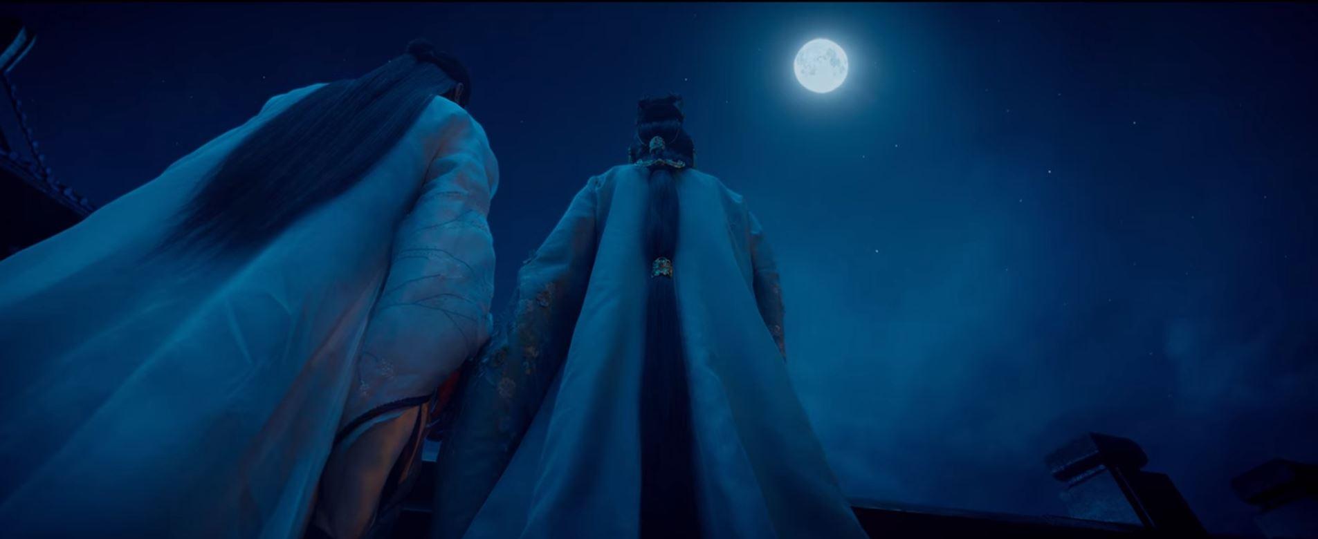 And this is yet another example of that color scheme in use but with a composition that separates one character from a pair, letting us know that they are currently on different sides (apologies for the blur, as it is a still from a show and I couldn't screenshot a better one). Although you might not want to blur them out too much, this could you guide our focus to whatever you decide should be more important through the usage of depth.