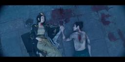2. Replace the sepia with a dark, cold blue. Then add a key light (warm, yellowish-orange) to the fallen King (signifying that the "good" has been slain).