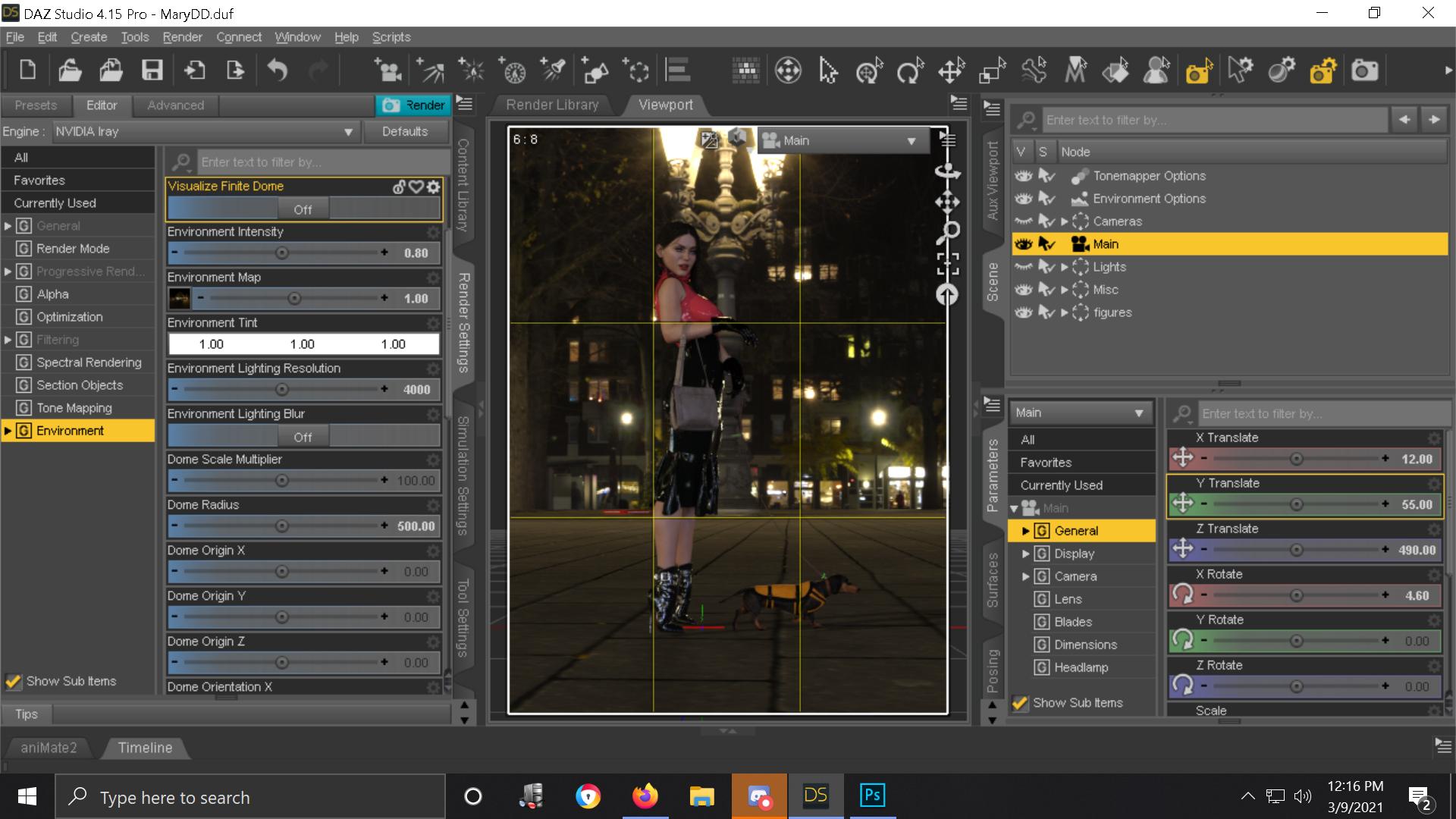 (5) with the camera selected in you scene tab, goto the parameter tab and adjust the camera according to your needs use the xyz translate and rotate dials