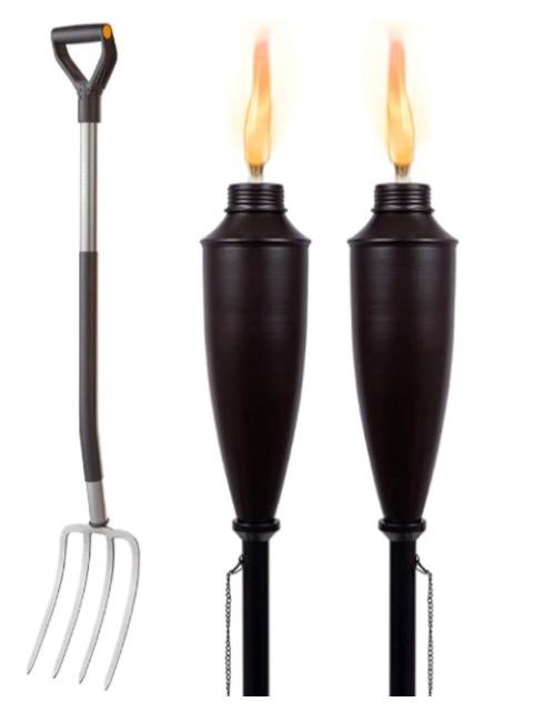 Technically this is "Pitchforks and Torches"... not the other way... and these torches have a pleasant citronella scent that keeps away mosquitoes.