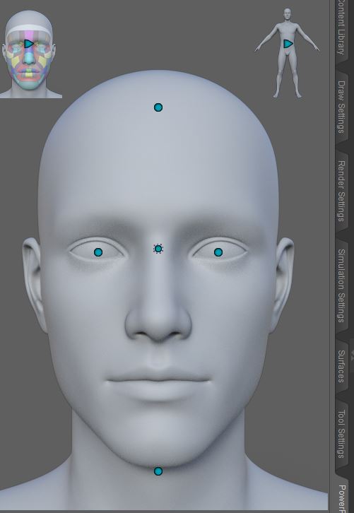 My Power Pose panel has 4 Templates: Body, Hands, Head, Face. Head is the one I've given a screenshot of, the one missing all the nodes. If I click that blue arrow it'll take me to the Face Template which has all the nodes and works as it should compared to tutorials and such online. As in PerttiA's attachment on their post.