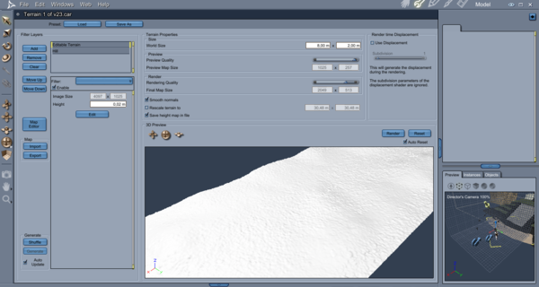 I used Insane bump to create and height map and then used the terrain editor to create the meshes