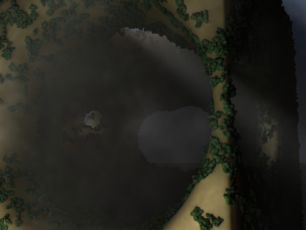 Just to be more in a "early morning" feeling, I added a fog primitive centred on the ruin mesh.