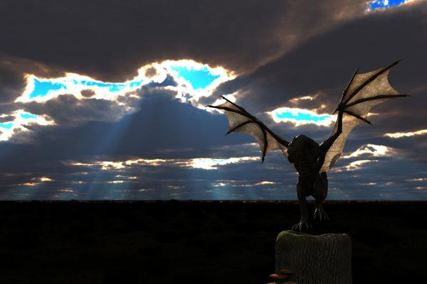 In this scene I wanted to light to cast from behind the ruins.