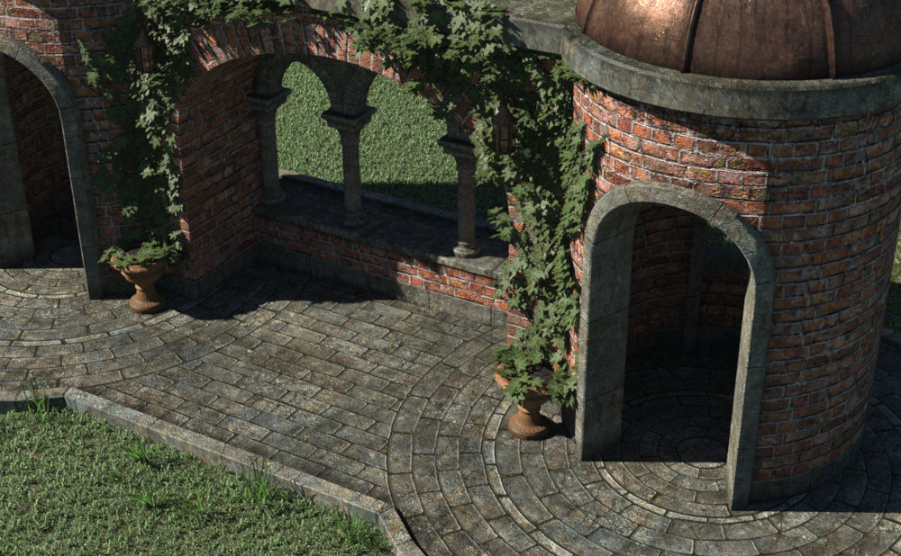 So here are them default maps, no vector displacement whatsoever, with ivy - transmapped ivy, which casts GI shadows, eating at rendertime but looking much more realistic than without this one diffuse bounce. 6 min 47 s on an i9-9880H.