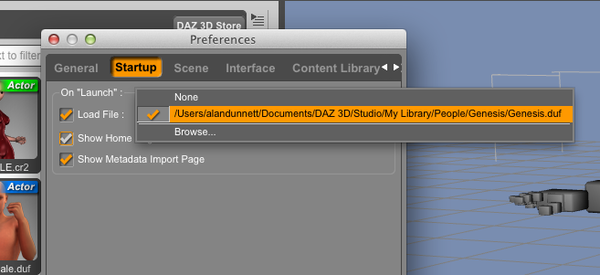 when launching daz on my mac i am getting the error message could not open the start up scene :