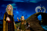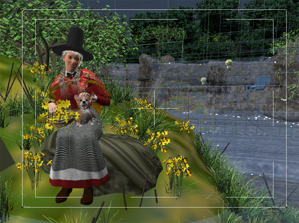 V3 in the Morphing Fantasy Dress is the adult guide. K4 in the Kids 4 Princess outfit is the little girl. V4 in the Starfire outfit (Rendo) is the knight. Dogs are Daz Millennium Dog.