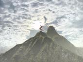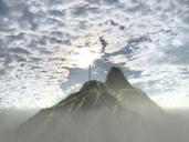 Here is a different project for me. I wanted to make sure I did at least one entry that integrated some Bryce stuff. For this, Bryce comes with a spiral staircase object (or I picked one up from a Bryce vendor in the Daz store), so I exported the staircase as an obj. The terrain is a Bryce Terrain and I grabbed a David Brinnen shader. I exported the terrain mesh in collada dae format, which also exported maps for diffuse, specular and bump. The maps were bmp format so I had to convert them. I chose jpg. I loaded the terrain in Carrara, and mixed David Brinnen's Bryce maps with a Carrara mountain terrain shader. I also created haze with Carrara volumetric clouds and increased the haze lower on the mountain by replicating some Carrara fog on a plane about the base. The background sky is mine. I applied depth of field focused on the staircase.