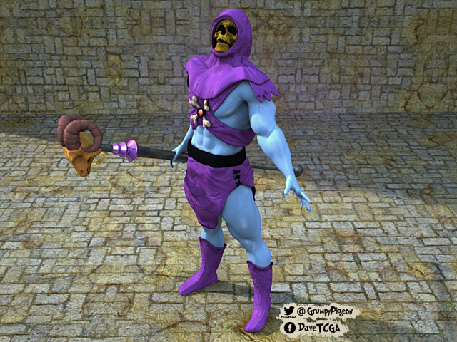 anyways... that baton made me model a wacky staff ... Skeletor's staff and put it in a render for the PC+ render challenge.. waving the Carrara bag ( which I modelled the other day )