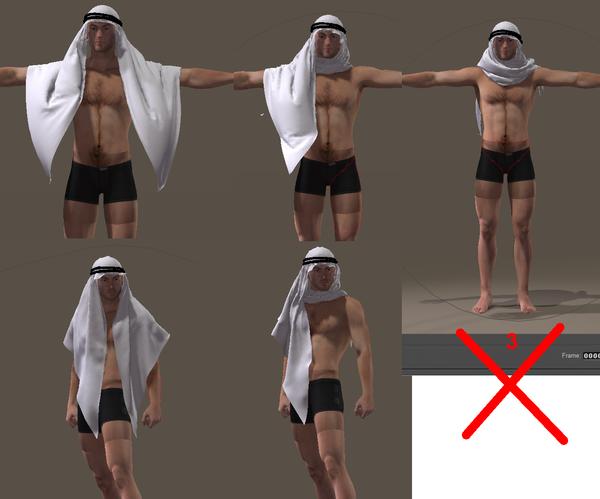 I've been able to get 2 of the 3 planned keffiyahs Poserized, so they work in the Cloth Room. The last one is a real pain, however. Even though it is almost exactly the same as the others in the upper area, which I have constrained from movement in all of them, that's the area that 'explodes' in the Cloth room simulations. I will do a bit more testing, but would you guys want the first two quickly, and the third whenever/if-ever it gets done?