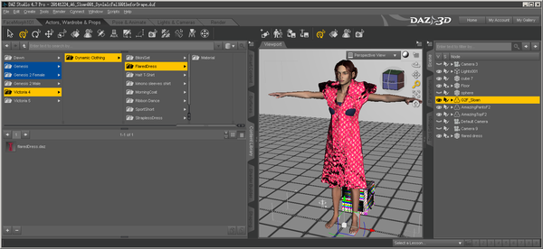 So I need to first learn how all that animation stuff works first? :-/ (Gulp)It works pretty well. You might have to target the dynamic cloth to the model and then untarget it. It has something to do with how the dynamic cloth sees the model, but otherwise, it works great. Here's the Maiden Faire for V4 on G1. I was able to even get the sash to work, which is tricky.