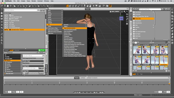 2) Now, select the dress in the Scene Panel and click the sub-menu icon and select Edit -> Apply Smoothing modifier. example12.png