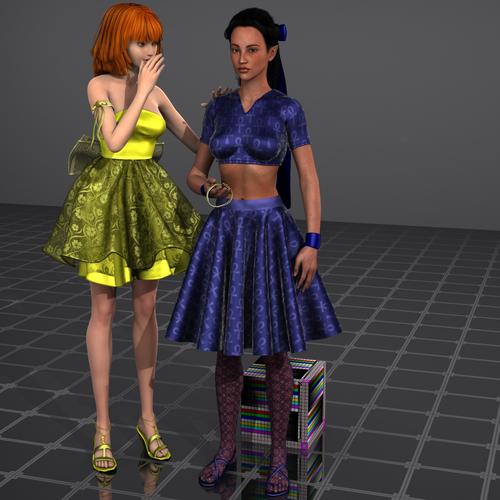 If I scale up the scene around the skirt, wont that make her waist bigger then the skirt waistband? That part seams to auto-fit fine. It was mentioned in a few places that dynamic clothing needs the hem-lines edited to fit different figure shapes for some items like shirts (Excluding this skirt for obvious reasons). I tried a few items from the other site, and had seen exactly what they were talking about, perfect fit on V4, and the wrong shape for plane G2F. V4 shirt on Olympia6, yea right, lol.