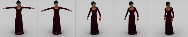 Here's the Maiden Faire Dynamic Dress on Dawn. I also included cells from an animation movie I did to show how this works. I've had absolutely no poke through with this method, but the key is to start in the default V4 position or, like I did here, scale the dress up a tad, like say no more than 10% extra. The character in the cells is Genesis with a custom V4 character that I converted using GenX, so I have a lot going on and I've been happy with the results. You wills see a dark square in the frame, something I fixed by moving it .001 below the floor after I did the movie. I had to put a box primitive under Genesis to get the dress to pool on the floor as it's just a plane and Dynamic clothing needs more substance than a plane to collide with. Other than that, it seems to work fine.