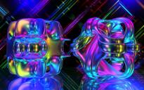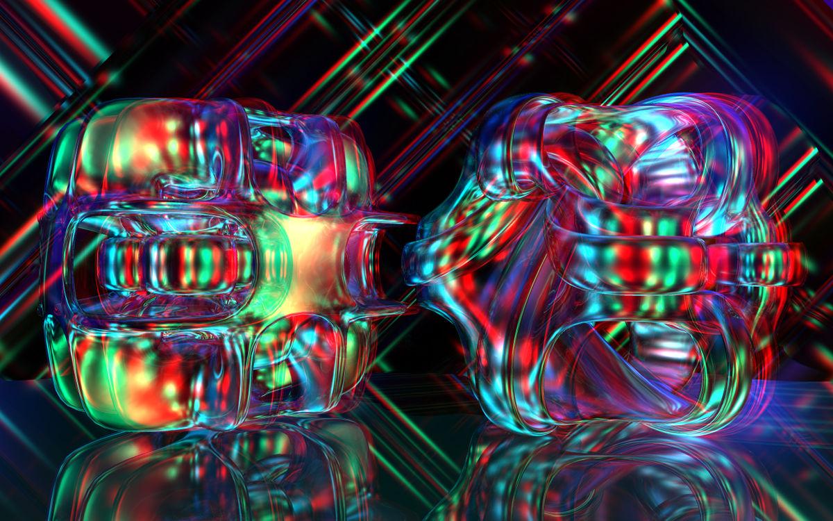 Both objects are from Fifty Funky Shapes & Fifty Funky Metals and in the background two corrugated sheets by von John Spirko. Everything with a transparent material, light and colour by the Rainbow2 HDRI, no sun. Rendered with Blurry Transmissions.