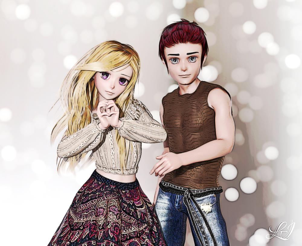 The first image is a regular render of Sakura and Kaito with filters in postwork. The second is rendered using manga markers, which I really like, especially since it's so easy to use, with added line work in post. The third image is with a BW filter etc. Any suggestions / feedback is welcome!