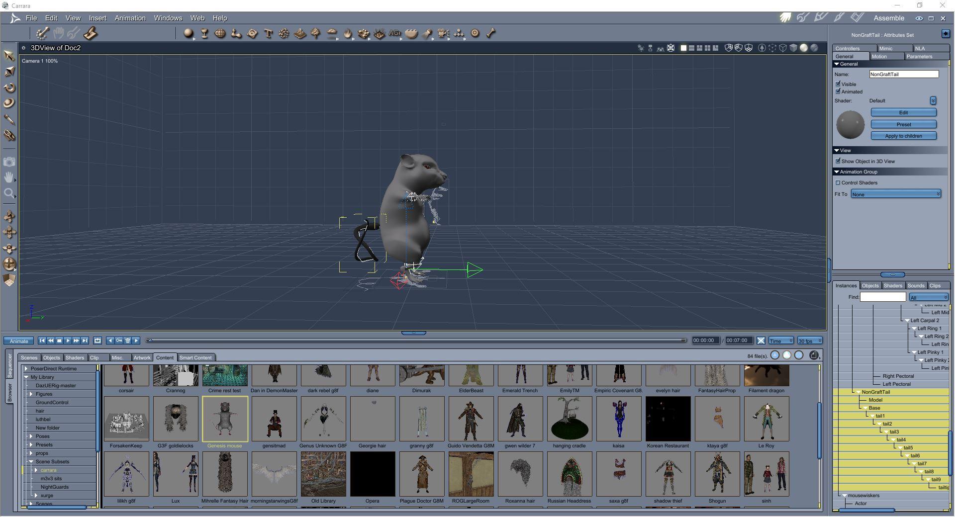 • Ok, that loaded properly.    Clothing morphs to it.  It no longer takes several hours to load.Let me see if I can get my character portrait done.   If I can't get Genesis to work, then I have to go back to the M4 Mouse.   Genesis Mouse is much nicer for fitting clothes to.   I've also morphed him from Mouse to Dressed Mouse, since this is a more fairy tail type mouse.   Thank you for getting me unblocked, Wendy.  It's really discouraging to burn the few hours I have to play with characters on trying to figure out why something fails to load properly rather than making the scene.