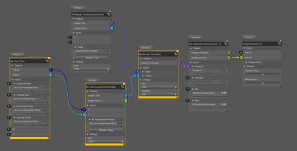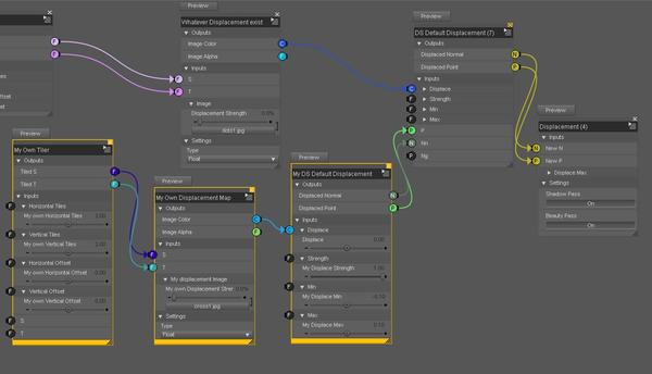 Well that Carrara method split the mesh something chronic the Blender way worked in such a way that it didn't. But neither way gave me the result I expected which was different from what the displacement maps do inside DS. But it did give me some variations so I will call it a win.