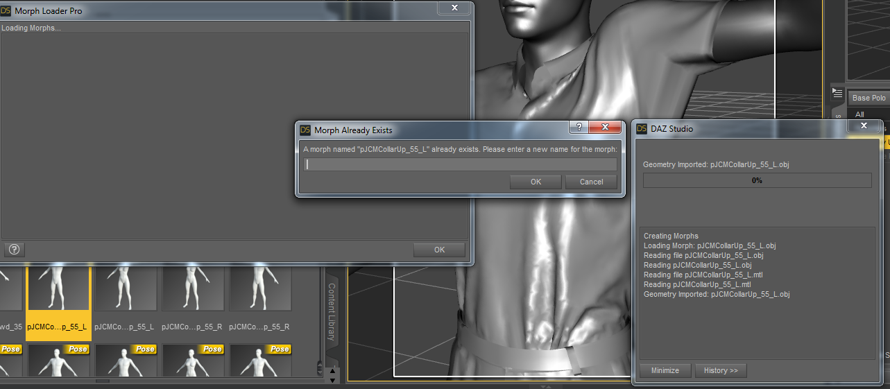 I did some testing and it is not working. I created a morph for pJCMCollarUp_55_L and named the morph OBJ as pJCMCollarUp_55_L as stated in the video. I loaded the OBJ morph into Morph Loader Pro and left everything as defaulted.