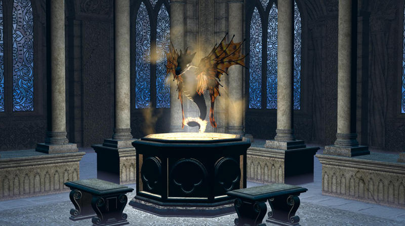 Okay here's the next render I have. This is a BCF scene using one of the Black Rose Collection models called Cloister. The well renders with an egg shape of energy above it to which I added the Faerie Dragon. The first one is with normal lighting the second with TA