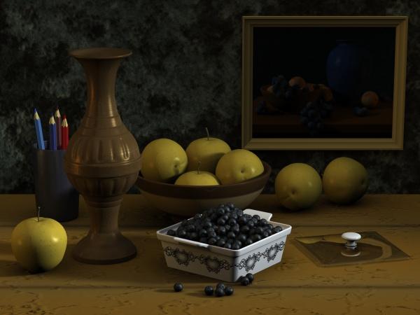 @slepalex: WOW! The renders are great and the texturing on the grapes and other fruits make them look real. Excellent job.