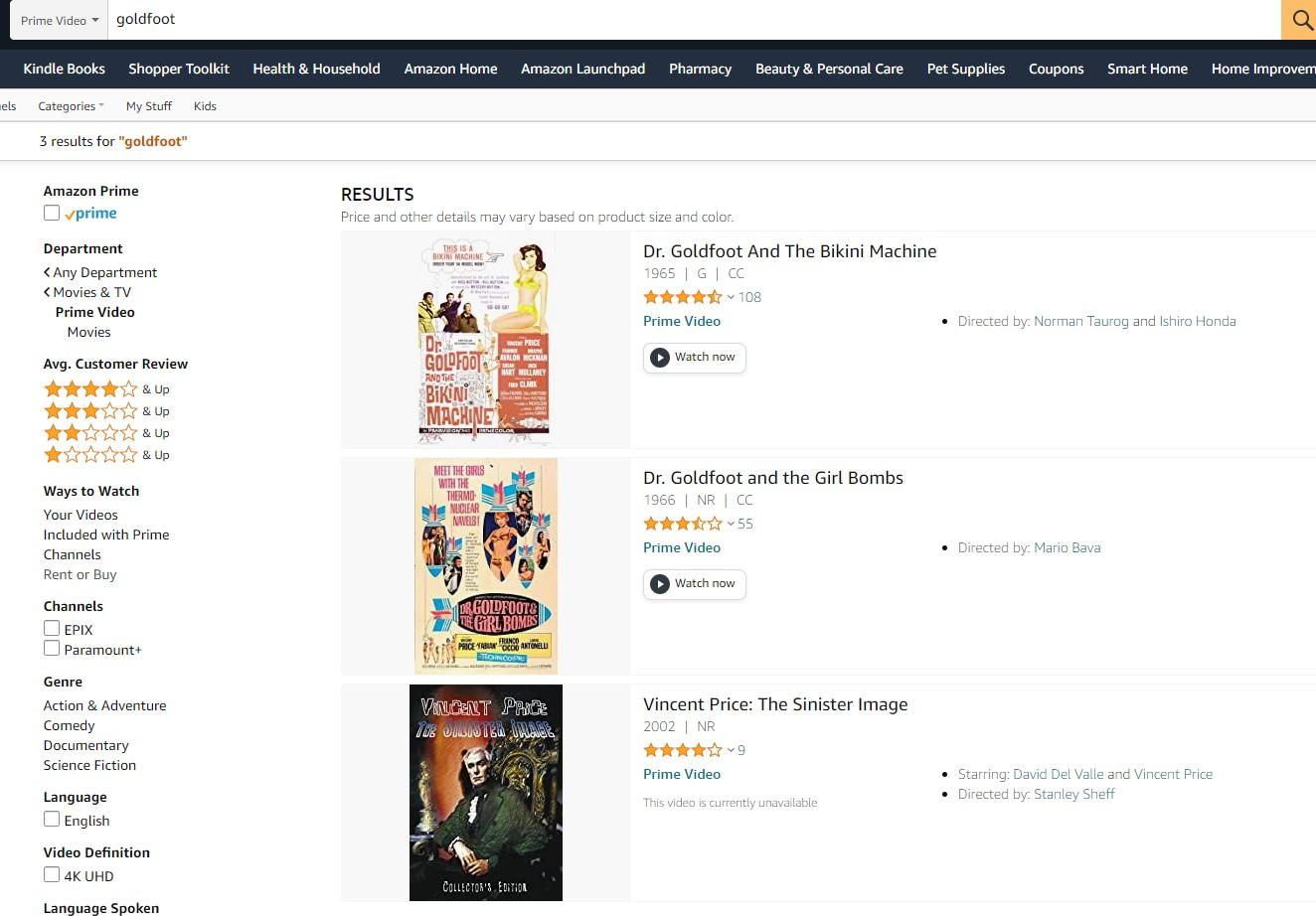 Dr. Goldfoot's Two Movies Are Included with Amazon Prime!