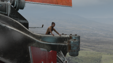 Our camera is coming around from behind the ship, making a large 120 degree orbit which ends up a closeup of his face. Just having him stuck in one position that whole time would be unacceptable. It would also look silly if his hands were sliding around. So I added an IK Chain for each arm and animated his body and head. The ship is also flying as are the two (so far) render cameras.