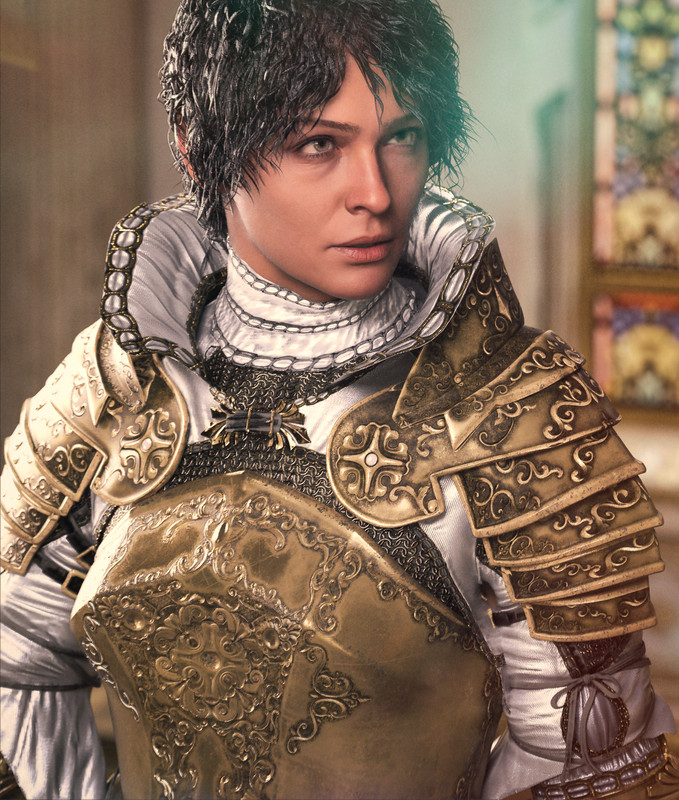 • The Defender armor isn't retaining default female chest shape. What it's doing is retaining bell-shaped cuirass shape regardless of whether it's worn by G9 Feminine or G9 Masculine. Which is exactly how a metal plate cuirass should behave, unlike 90% of Daz armors that magically reshape to breasts and pecs..