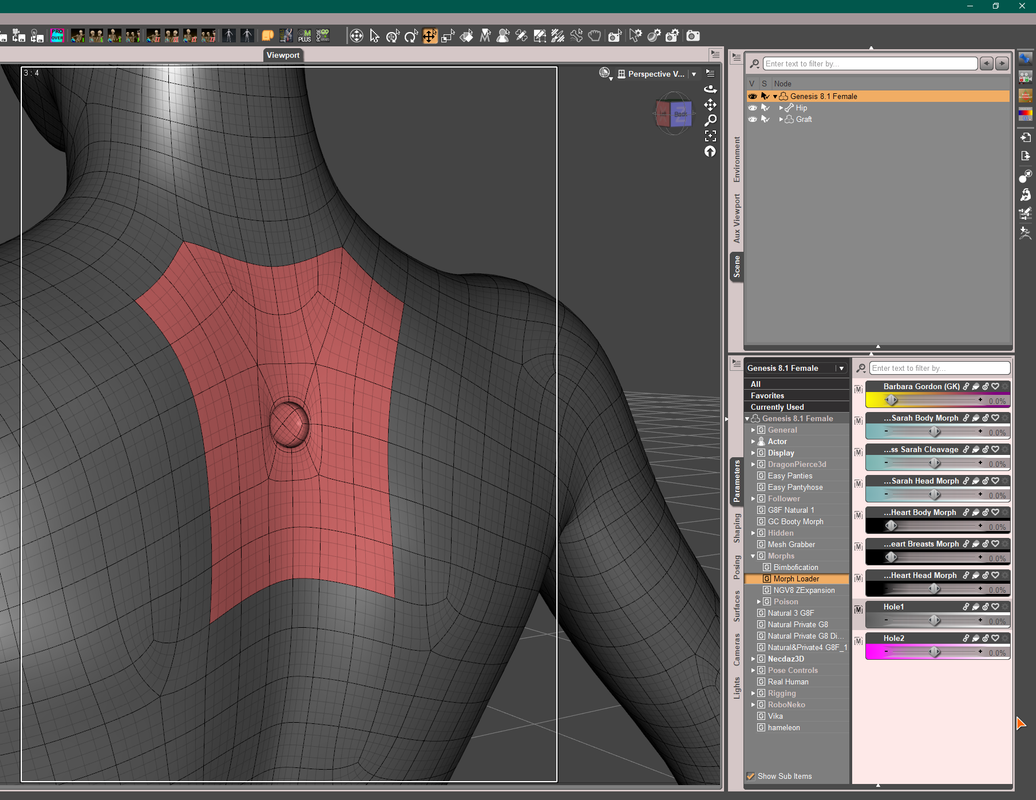 Not the best demo of what and why I need and how it looks, but there it is. I might just start modeliong the figure changes separately from the graft changes. I think it is fine and I can think of additional reasons to do so. If I ever see a bad transition then I can export both and import the morph for both. In most cases it might be fine. Just wanted to see everything together and work on it together and still be able to disable or swap grafts.