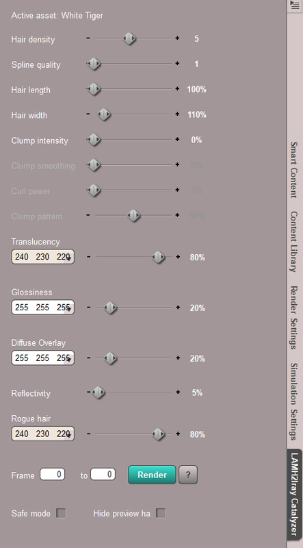 Hey all. I've purchased Big Cat 2, White Tiger, and the Iray Catalyzer plugin (which I also activated through the serial number registration process) and installed the LAMH player plugin, but I'm running into two problems with this model.