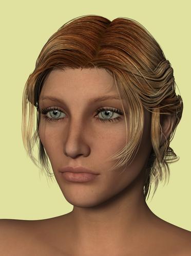 Edit: Third is with Barn Lights. Karine's pores look very HD to me, nicely done! Her hair is darker because I used a darker texture due to her eyebrows. Didn't think blonde went very well with her coloring.
