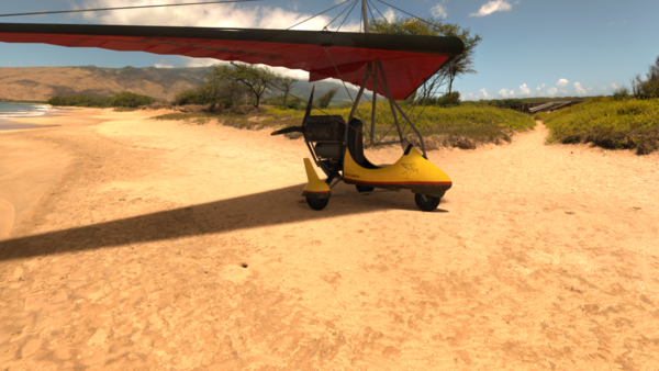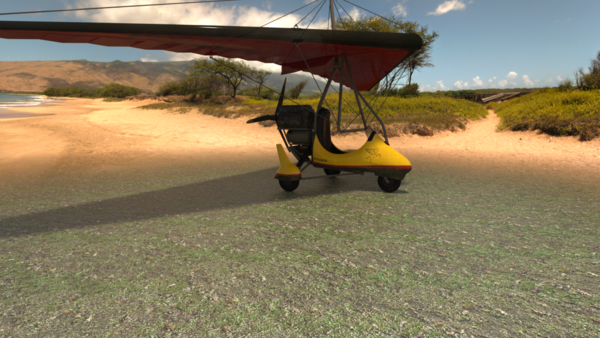 The first attached image shows the Ultralight model on the Maui beach (DimensionTheory's DTHDR-MauiA). Looks OK, at least for the purpose of this example, but lets say we want some grass in the center of the scene, as in the second attached image.