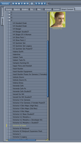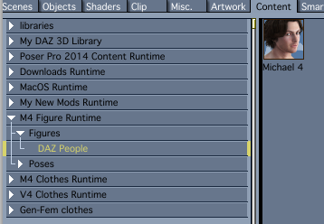 What I finally worked out was creating a folder on my HD dedicated to that figure alone. I realize that this was not really solving the problem, which members of the forum were helping me with, but at this time all I wanted was to be able to work with the figures I had paid for. Thus I have a folder for V4 only, a folder for M4 only, a folder for M4 clothing, a Folder for V4 clothing. etc. I 'm sure I am re-inventing the wheel as I remember somebody on the forum describing something similar. It may be clumsy, but I can understand this simplistic approach - I know where my people are located. In contrast, "My DAZ 3D Library" is a confusing portfolio of countless files, many of which I do not have a clue what they are for. I would assume that many of them are runtimes for the many terrains and foliage - but I don't know.