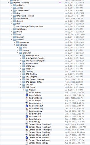 Forgot to add, that Dartenbeck has a great thread about Carrara with tips and tricks for organizing your runtime folders, among other things. If you're just starting with it, it may be worth looking into. My stuff was all higgledy piggledy long before I met Dart, so it's just not worth the time for me to go through and reorganize everything. Maybe when I get a new computer....