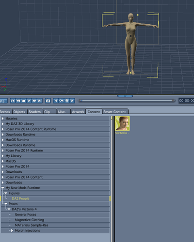 We should also probably alert you that if you are used to genesis there will be some differences in the default load. V4 and M4 load with a minimum amount of morphs. Most morphs bought from Daz for these figures are held in injection pose files and the surface textures can be changed with MAT pose files. As the names imply, the morphs and materials are applied by going to the Pose folder, finding the appropriate subfolder (perhaps a folder called Daz's Victoria 4?), and apply the pose.