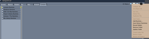 Yeah, that whole runtime thing is a real PITA. I have had it where everything looked like a runtime and was called a runtime, but Carrara for some reason wasn't seeing it as a runtime. I usually have had it happen with 3rd party products (usually freebies).