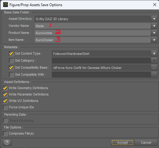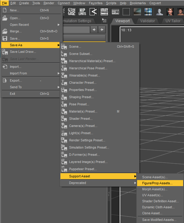 Select the item in the scene file. Click on File - Save As - Support Asset - Figure/Prop Assets