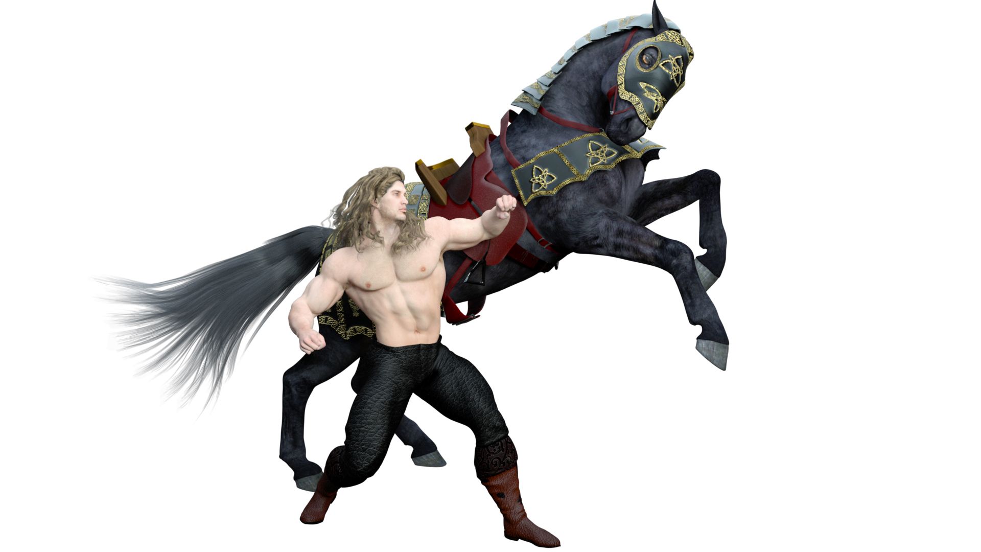 These two turned out okay all things considered - but then I rendered the horse and Talon separately and I think the combined image is the best.