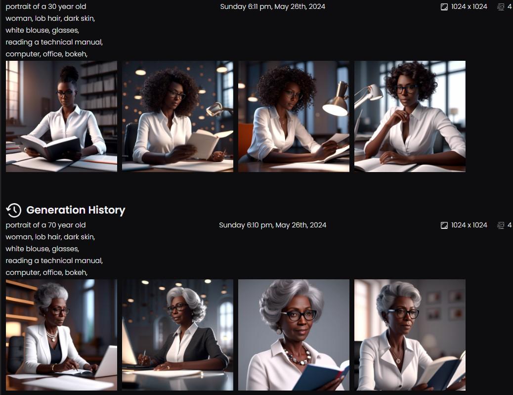 You can also get more specific by adding an age - "30 year old woman", "70 year old woman".