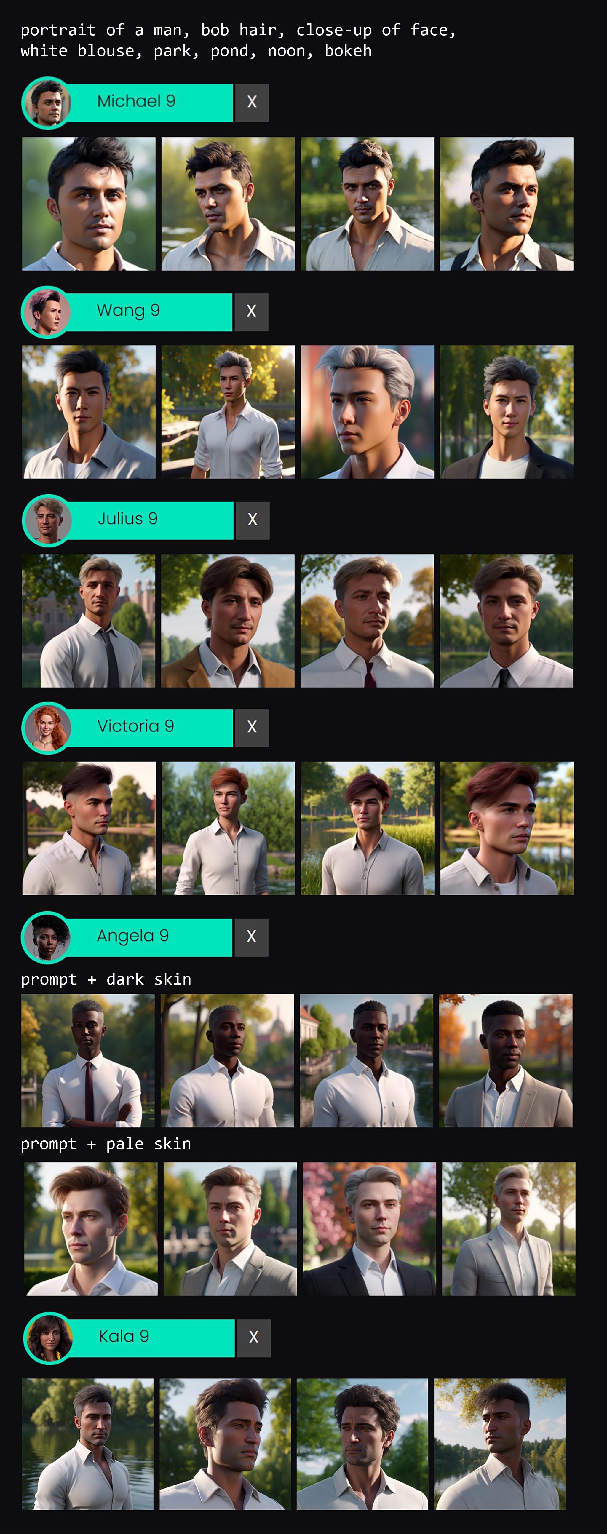 That is an amazing overview, First Bastion - it illustrates that you can get feminine versions of male LoRA by using the token "woman".