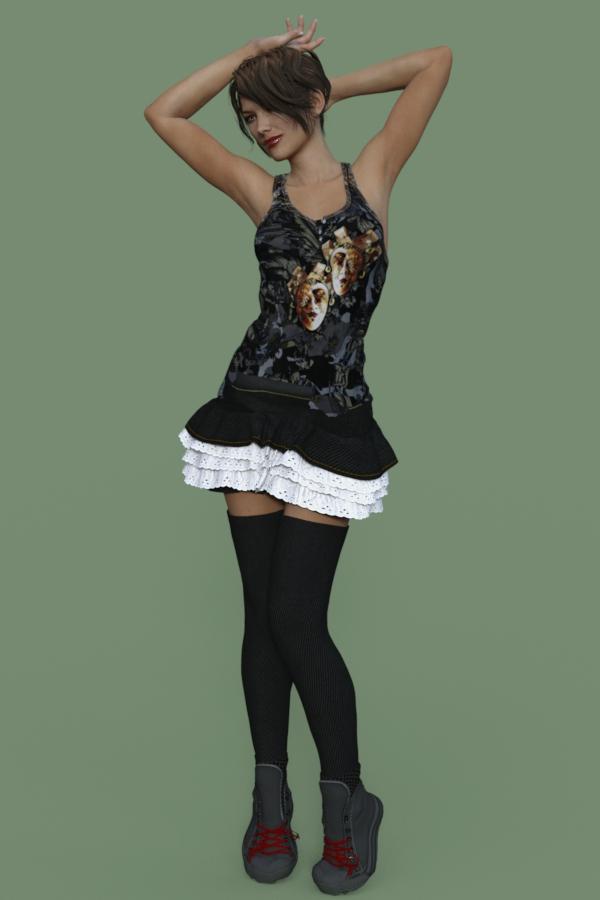 Be sure and look at the skirt the way it loaded, even with Wear Them All, the SY Ultra Template came to the rescue with the bent leg and ruffles.The Wear Them All gave the correct fit, but the movement was handled with the Ultra.
