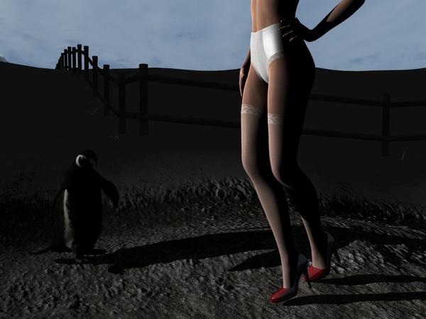 The same scene (minues the green shoes) in Iray. I'll edit the settings after I reboot my computer. Iray makes my computer run hot too.