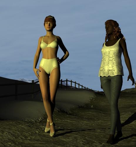 playing around with lights and shadows again. The advanced spotlight is below the characters pointing up. Yes, the scene is supposed to be dark.