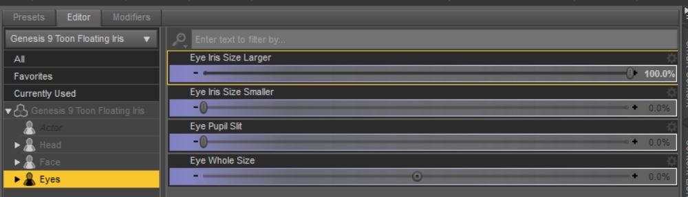 Is there a way to enlarge the iris with toon eyes? I have a few models that have larger eyes, but I can't find a way to scale the iris accordingly.