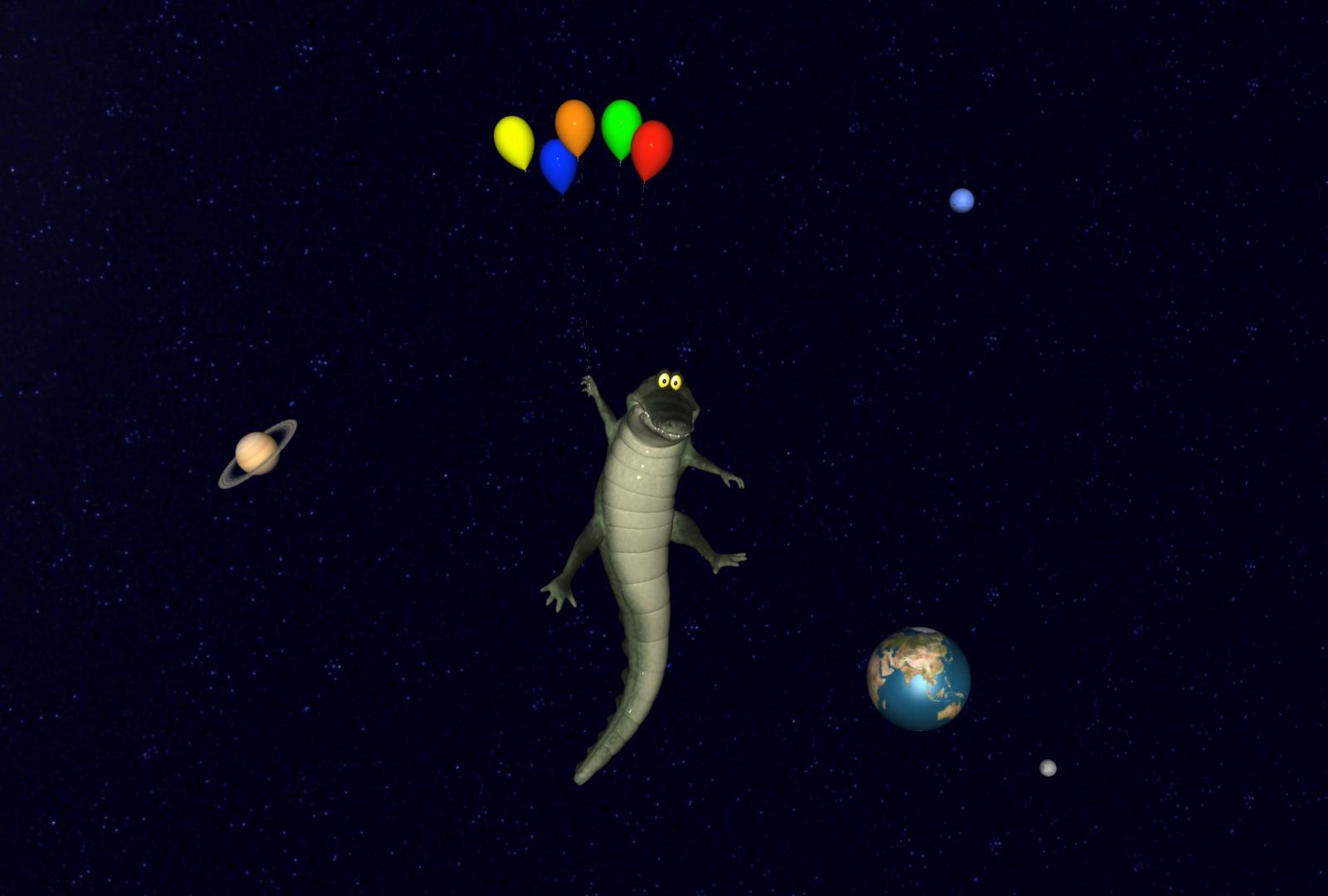 3D Universe: Toon Croc, Lyrra Madril: Ballons, sambees: Starry Sky Stock (DeviantArt), Planets: ? (Carrara native items I believe)