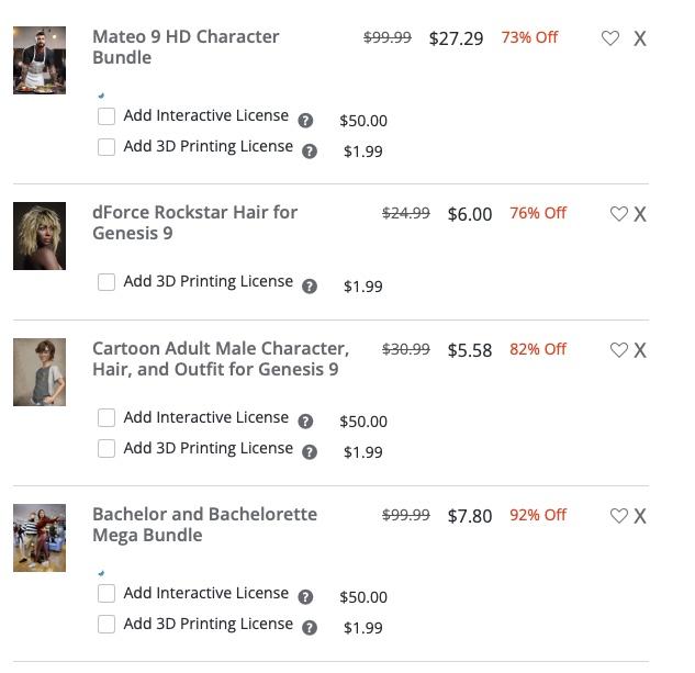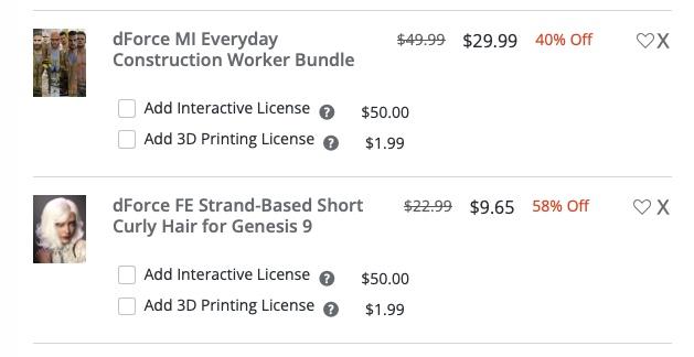 I added an item from author esha's store (https://www.daz3d.com/gem-jewelry-for-genesis-3-and-8-female-s) to get the extra 20% off when you also buy the $2.99 "Snowflake Jewelry for Genesis 9" today, but the discount isn't applied. It looks like that's because the gem jewelry asset is also in the "Fast Grab" section for 70% off - is this a bug or intentional? I know that tokens don't work on Fast Grab items (which is annoying and means I never buy things that are on Fast Grab sale) but it seems especially weird that an author-specific discount isn't honored.